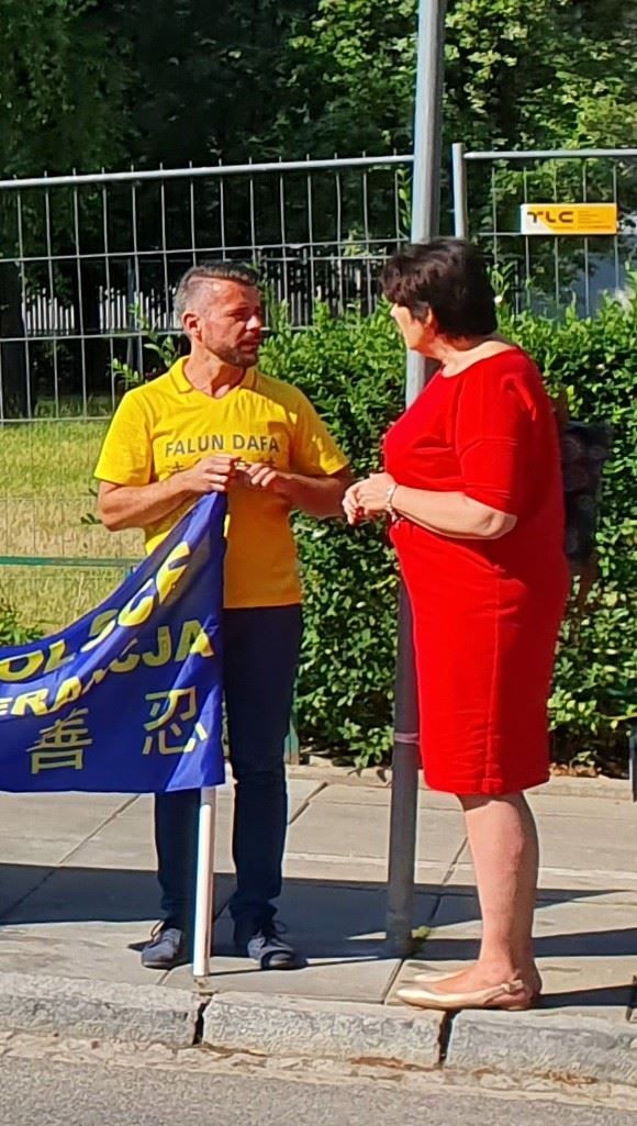 波兰议员Dorota Rutkowska女士到现场告诉法轮功学员,她支持法轮功,支持法轮功学员的活动,她认为这种活动非常有意义,她祝愿法轮功学员心想事成,并现场拍照并表示这张照片会发布在她的个人社交媒体上。