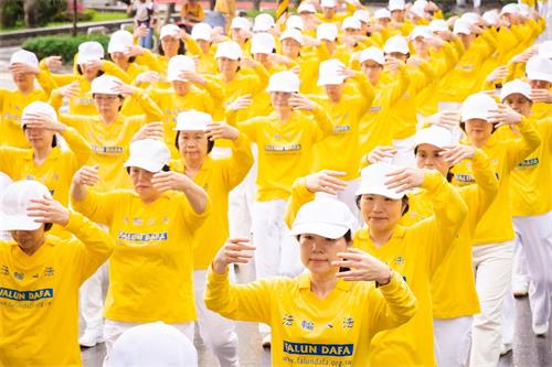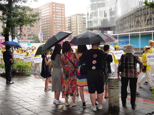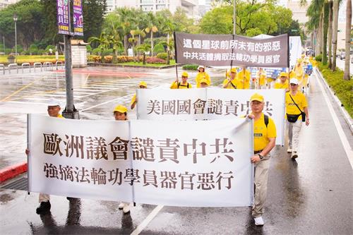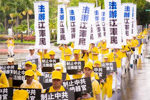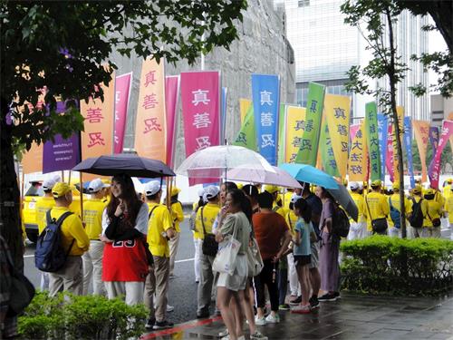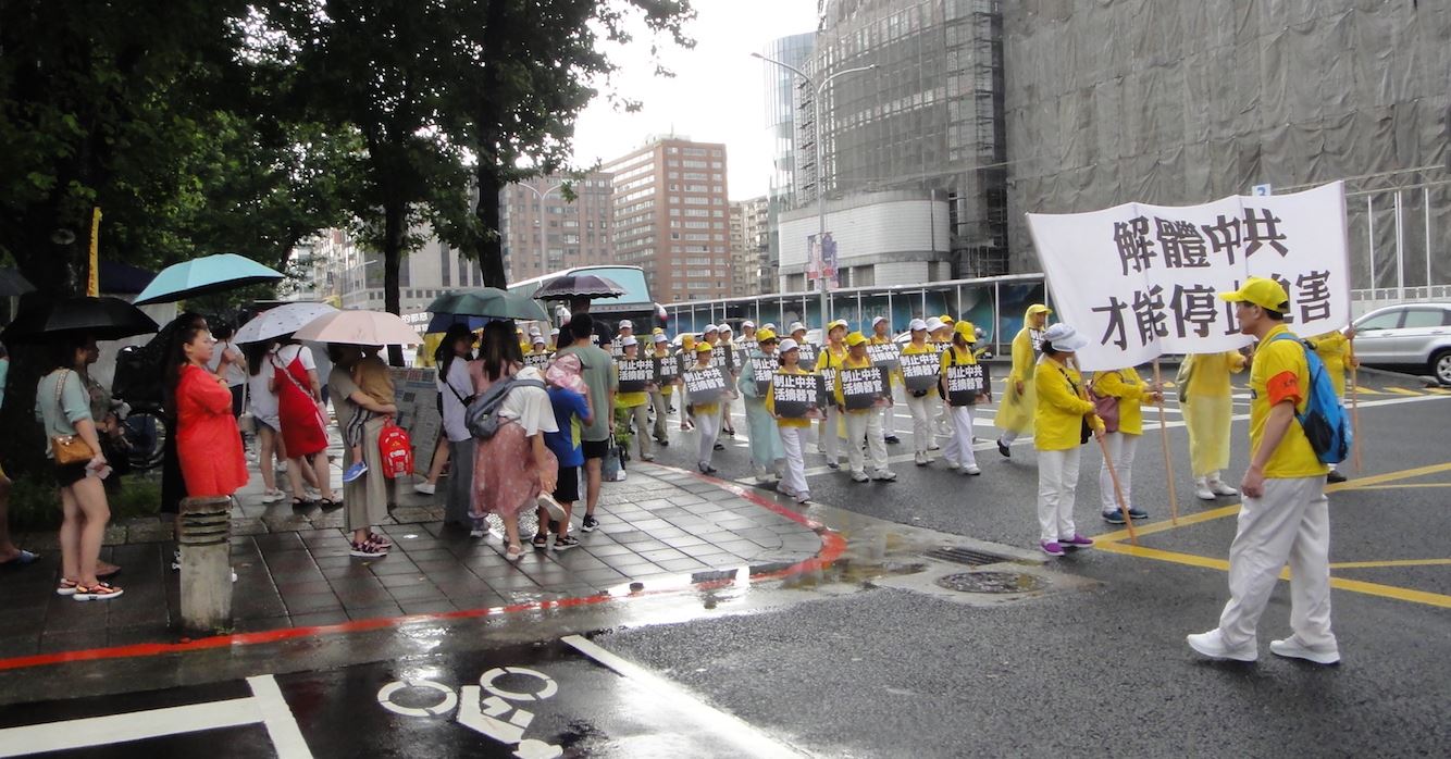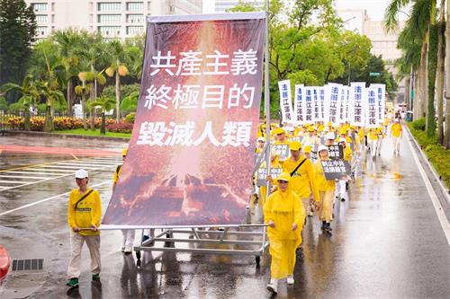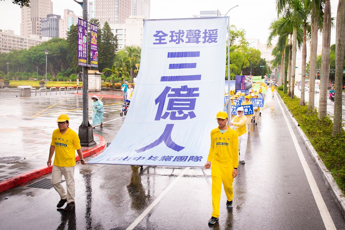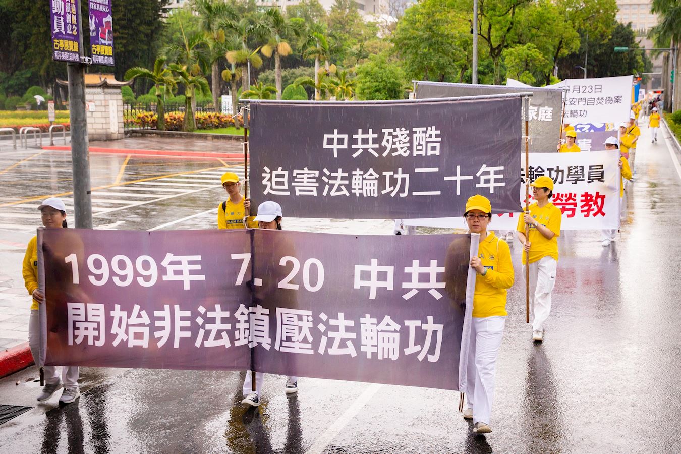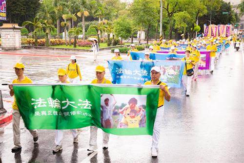 二零一九年七月二十日,来自大台北、桃园市、新竹市、新竹县、苗栗县、宜兰花莲地区的部份法轮功学员,在台北市举行大游行。两千名法轮功学员组成的游行队伍,分为“大法洪传”、“千古奇冤”、“三退大潮”和“结束迫害”等四个方阵,中间还穿插炼功演示队、仙女队、腰鼓队和旗鼓队。学员们手持各式真相幡旗、横幅与展板,传送法轮大法的美好与真善忍的福音,揭露中共残暴的邪恶本质,呼吁制止迫害、法办元凶,晓谕天灭中共的因由与必然。