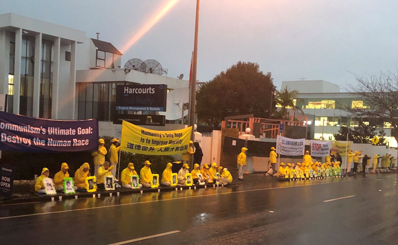 在新西兰奥克兰和基督城中领馆前揭露迫害(图)