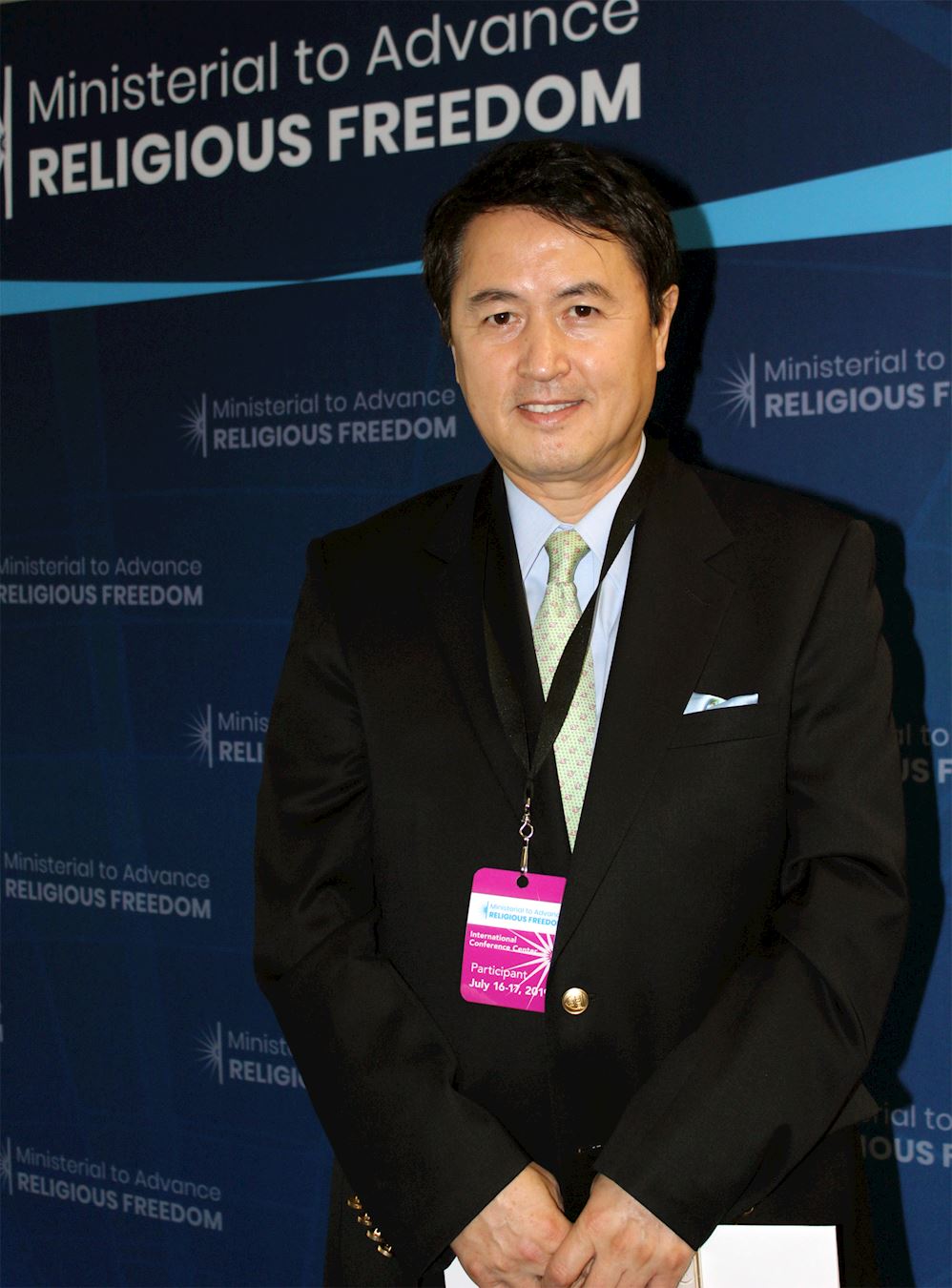 ![]() 图2:法轮大法信息中心发言人张而平 |