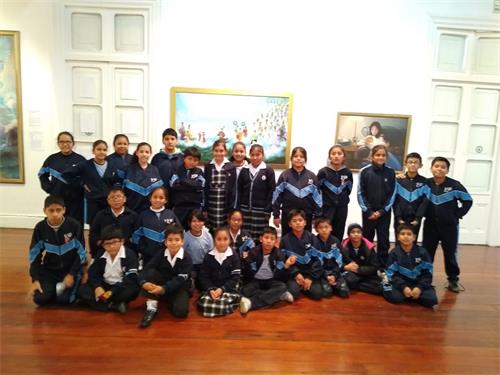 其中帕朗果(Barranco)区八所学校的三百八十名学生在老师的带领下,聆听讲解员对每一幅画作的解说,对法轮功修炼者在中国大陆遭到的迫害有了深入了解。