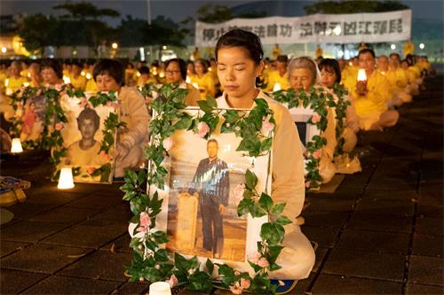 '图1~3:二零一九年七月二十日,台湾高雄部份法轮功学员在凤凌广场举行集会和烛光悼念活动,谴责中共对法轮功长达二十年的残酷迫害。'