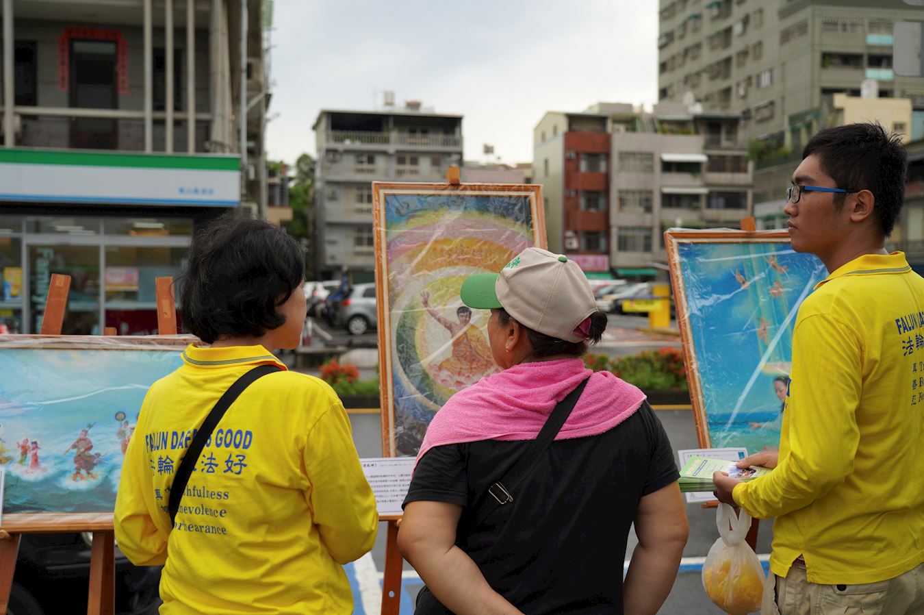 来自新兴区的一位里长傅女士,跟着法轮功朋友来到现场,想进一步了解法轮功为何遭受中共迫害。傅女士表示,她曾经看到法轮功学员在台北立法院静坐、在金门集会。那时在立法院前,她看到法轮功学员非常平静地在那静坐,可是同时有一批中共派来的暴动分子爱国同心会的成员在旁边大吼大叫,形成强烈对比,法轮功的和平跟善良值得尊敬,反之那个同心会很可憎。今天来到凤凌广场再次体会到法轮功的和平善良,很令人感动。她觉得法轮功值得推广,让更多民众来学炼受益。
