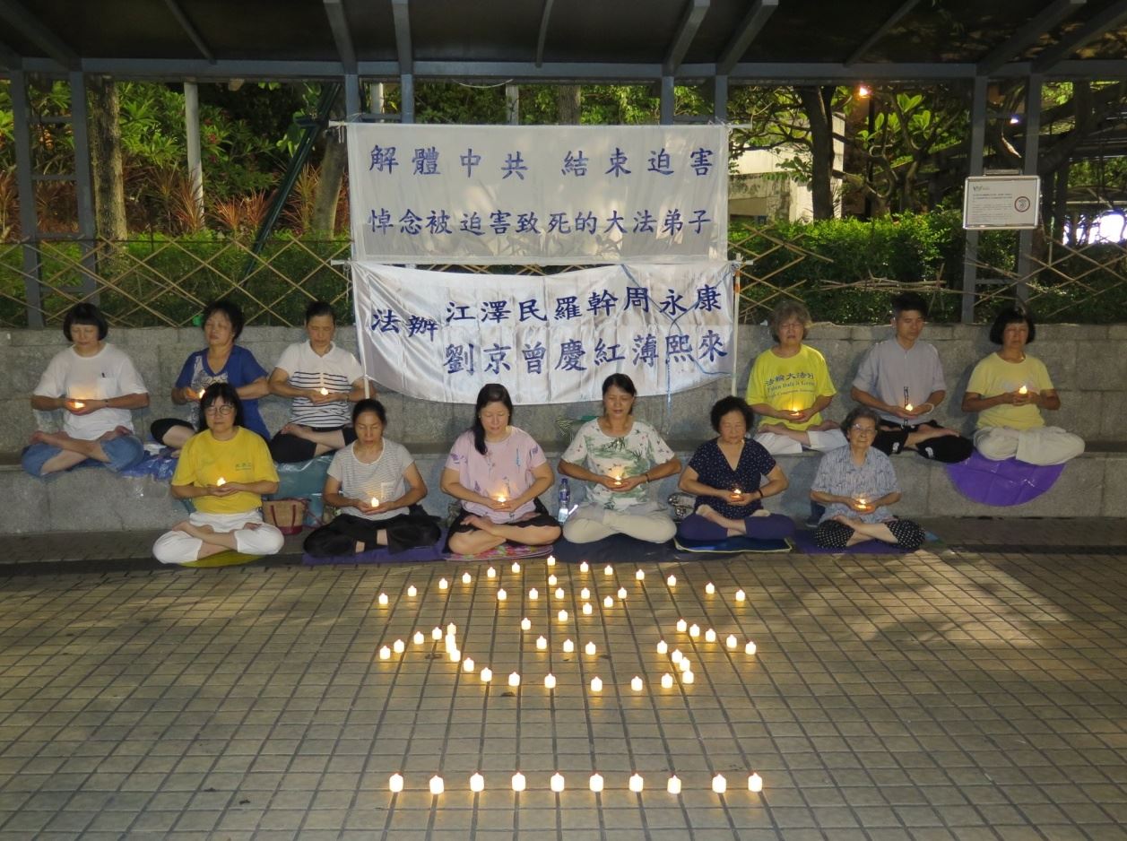 图:2019年7月19日晚,澳门法轮功学员在佑汉公园举行烛光夜悼。