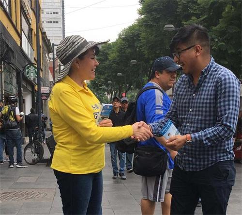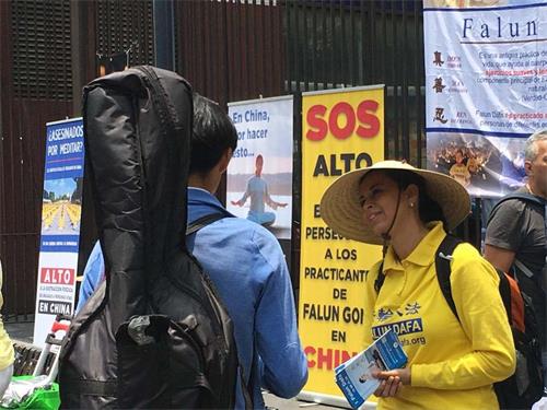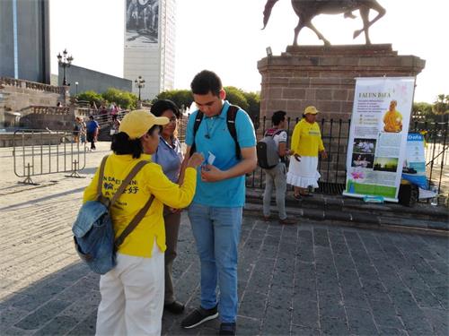 一位学生说:“法轮功学员做得很好,你们在声援那些受迫害的中国人,这是令人钦佩的。瓜达拉哈拉(Guadalajara)居民听到中共对法轮功的迫害,他们感到愤怒。希望情况发生变化。”