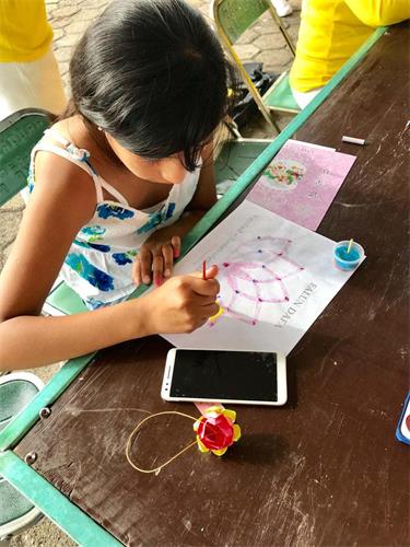 图14:两个小女孩迷上了学画莲花 |
