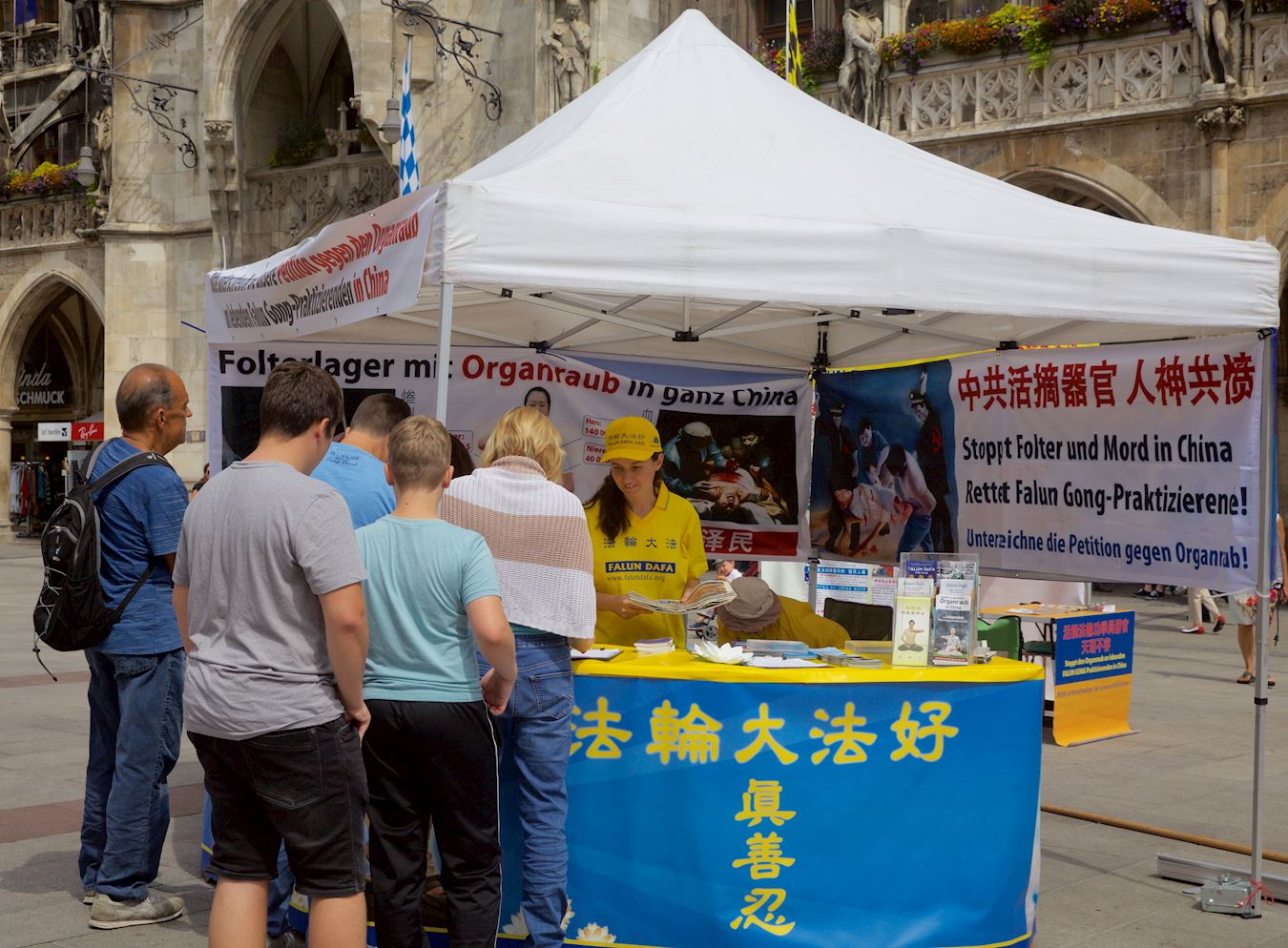 【明慧网二零一九年七月二十四日】(明慧记者德祥德国慕尼黑报道)“人类是有尊严的,这是不应该发生的。这震撼了我的心,我要尽全力,来制止这件事。”退休幼儿教师安娜·赵斌(Anna Cabin)签名声援法轮功学员之后,还在信息台前流连,希望能帮助法轮功学员做些什么。这是二零一九年七月十九日在德国慕尼黑著名的玛琳广场(Marienplatz)上发生的一幕。