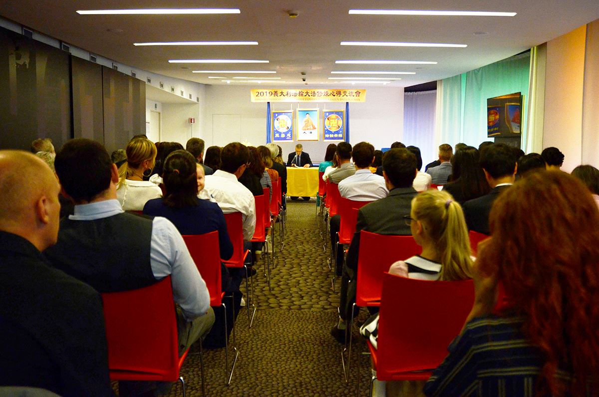 第二天七月二十一日(星期日),来自意大利全国各地的大法弟子在罗马市中心酒店,召开了意大利法轮大法修炼心得交流会。