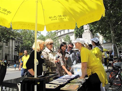 ![]() 图10:二零一九年七月二十日下午,法轮功学员在伦敦圣马丁广场(St Martin Place)集会继续传播真相,呼吁制止迫害。 |