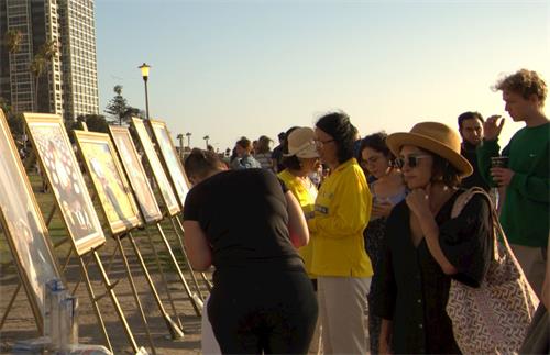 与家人到海边游玩的玛德瑞娜(Madrina)被画作吸引。在了解了法轮功所受迫害后,她表示,感到非常难过。她认为,媒体应该更多地关注法轮功受迫害的事,因为这与道德和良知有关。玛德瑞娜(Madrin)还向自己的女儿解说那些画作,并告诉孩子“在其它国家正有人因信仰而被迫害”。她表示,不会对孩子避讳这些残酷的话题,因为那样对孩子没有帮助。她希望让孩子在了解之后,能去思考如何制止这些悲剧的发生。
