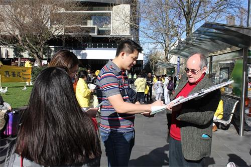 “我不是法轮功学员,但我知道,信仰自由是基本人权,是普世价值。我们生活在澳洲,我们必须尊重每一个人的信仰。基于这一点,我对摆设摊点的人员提出了异议,并进行劝阻。”