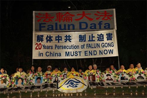 '图15~16:二零一九年七月二十日晚,法轮功学员在墨尔本中领馆前举行了烛光夜悼。'