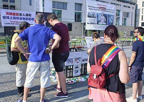 二零一九年七月二十七日下午,柏林法轮功学员在菩提树下大街举办信息日,传播法轮功真相。
