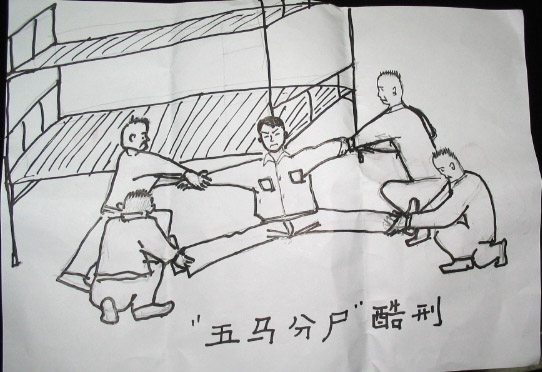 中中共酷刑折磨示意图:“抻刑”(“五马分尸”)(明慧网)