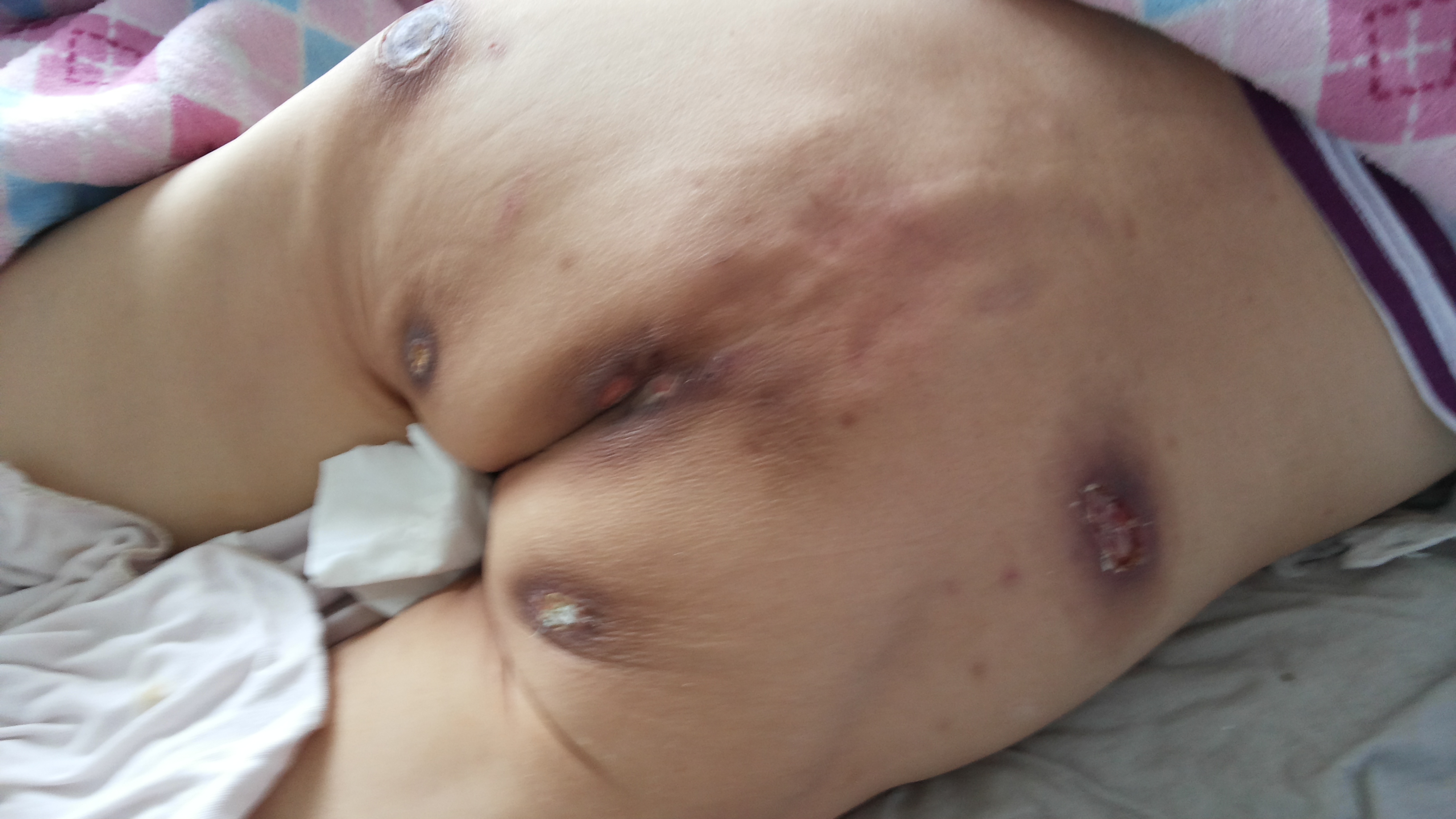 图为王云洁的右乳被电烂的惨状。(明慧网)