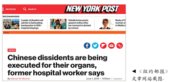 二零一九年六月一日,《纽约邮报》(New York Post)刊登作者史蒂芬·莫舍尔(Steven W.Mosher)的文章说,中共头目江泽民迫害法轮功后,中国移植行业特别丰富的新鲜器官来源来自法轮功学员。在中国,几乎每进行一个器官移植手术,都是以剥夺另一个无辜的生命为代价的。