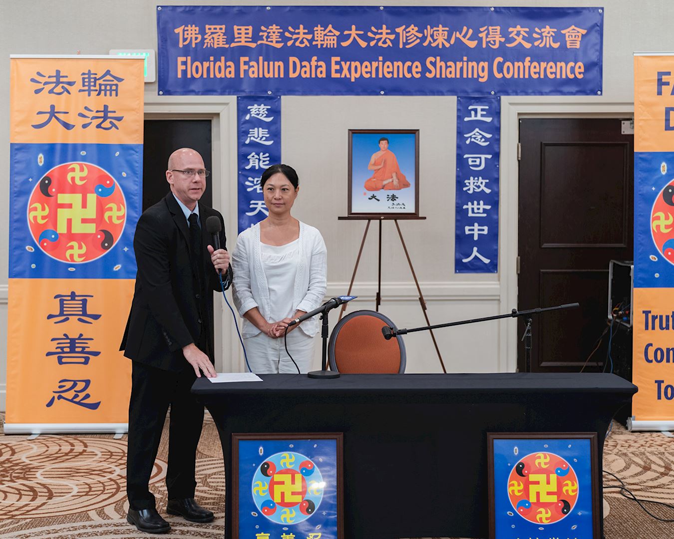 ![]() 图3:Dr. Von在佛州法会上交流了自己的修炼感受。 |