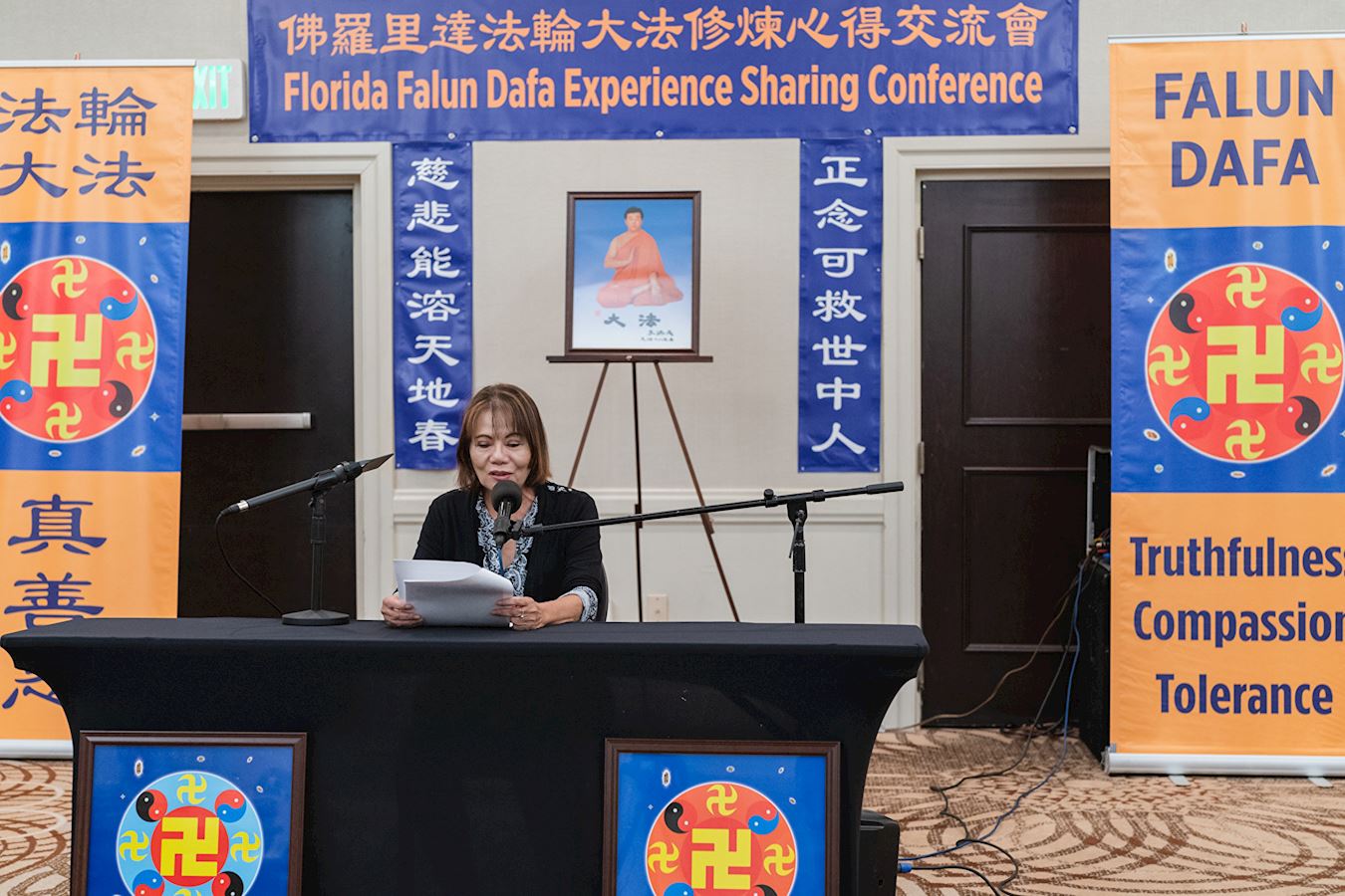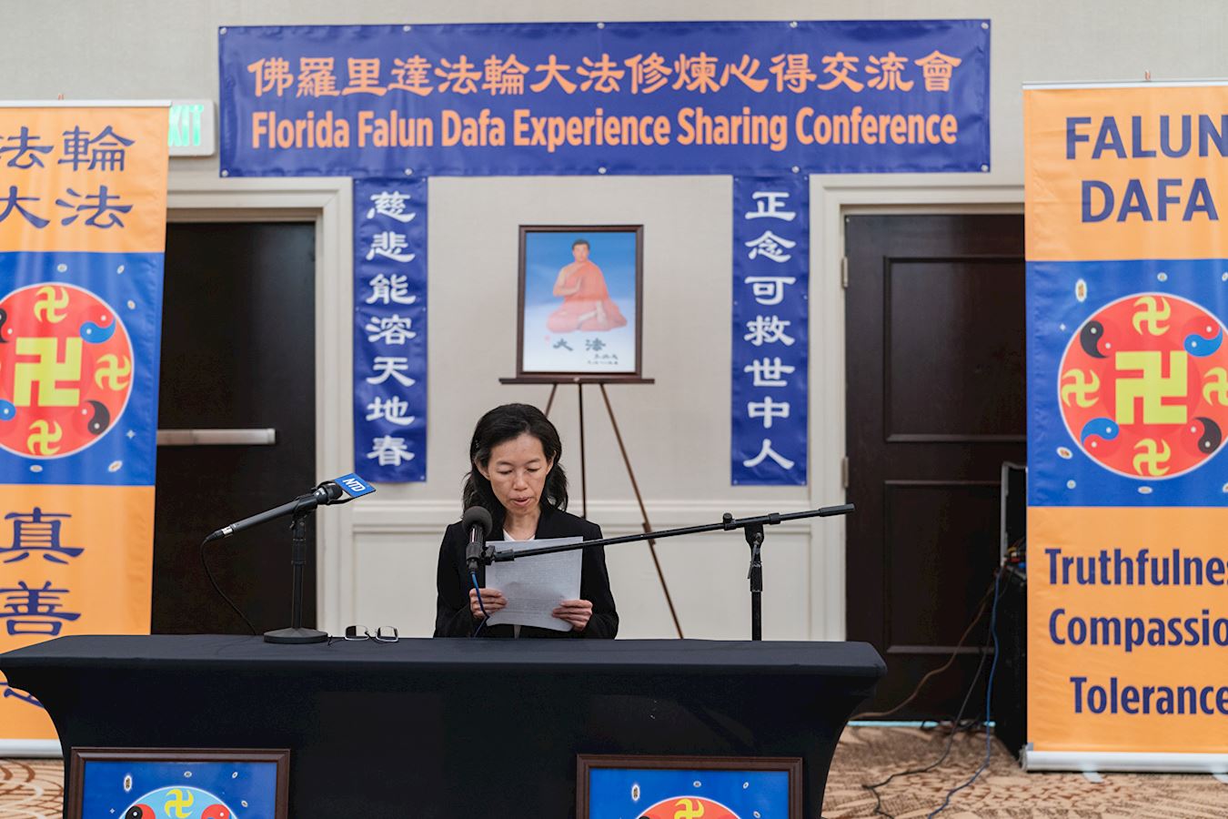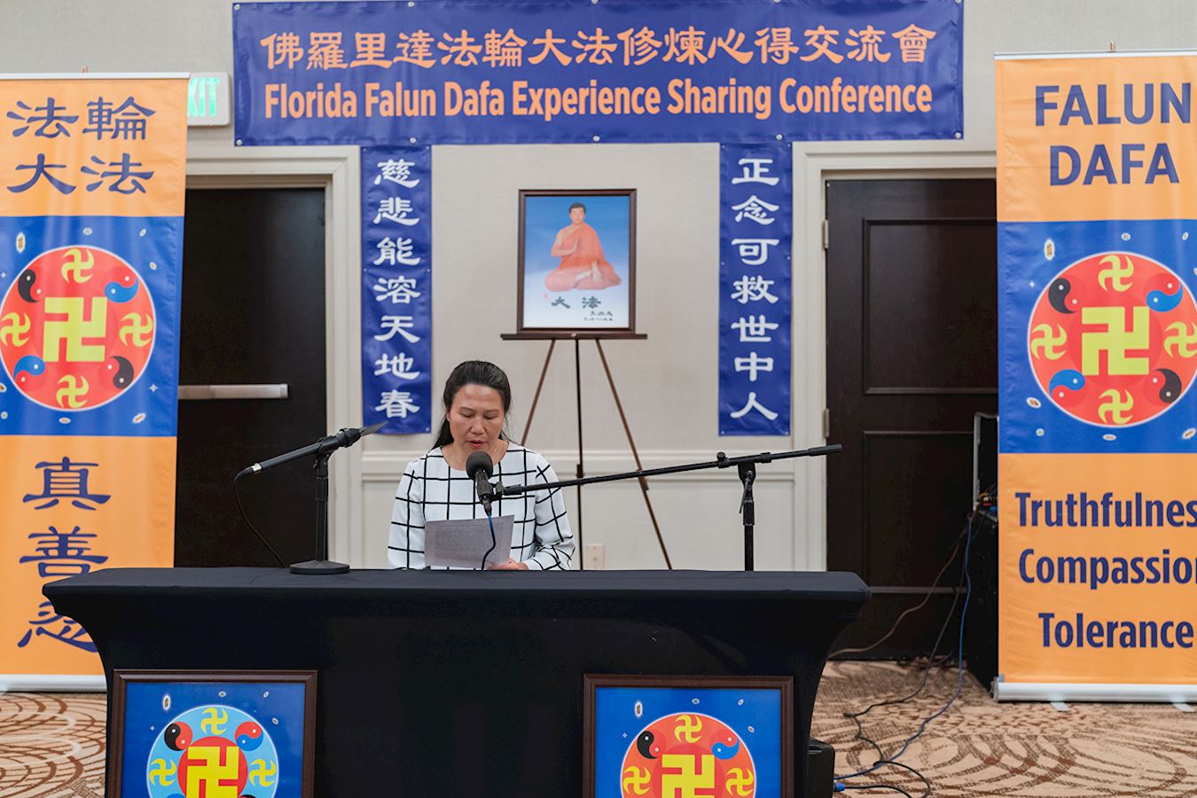 ![]() 图7:李敏瑜在佛州法会上交流了自己的修炼体会 |