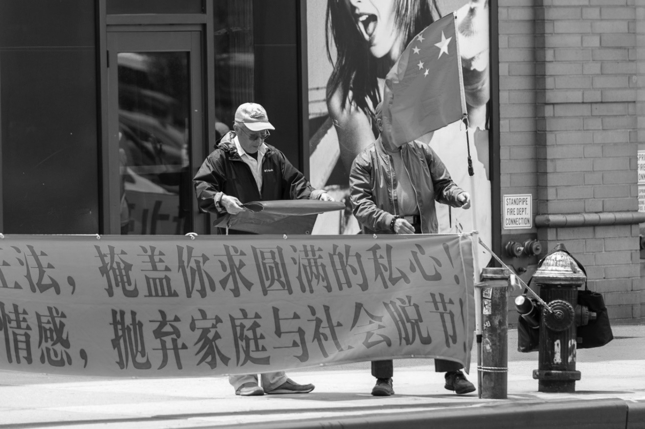 图2:左WAY H.QIU,右NINGXIANG LIU 两人常年在纽约中领馆前干扰。