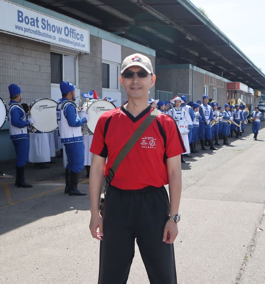 图9:在密西沙加,当天国乐团在游行前排练时,国伟一直在旁边欣赏他们的演奏。