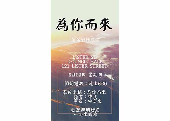 二零一九年六月底至七月初,由新唐人出品、新境界影视制作的真相故事片《为你而来》分别在澳洲悉尼、昆士兰和堪培拉公映。