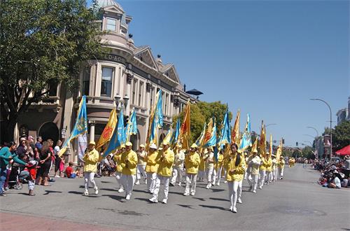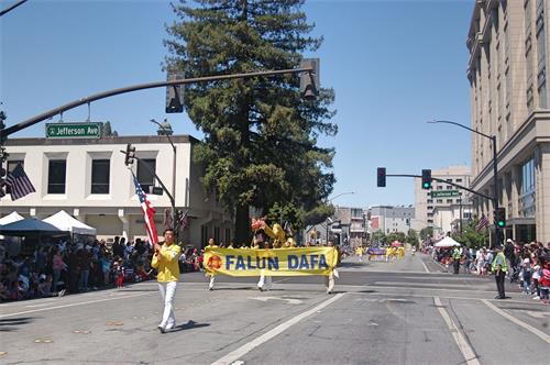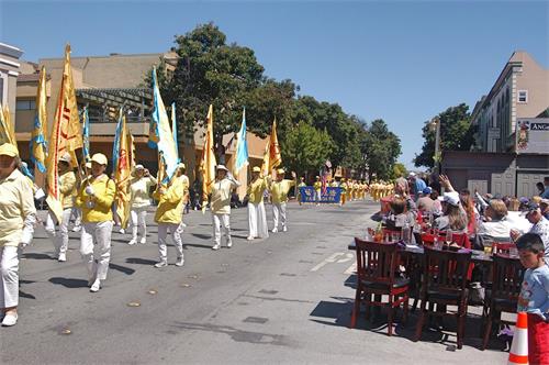 当天的游行主办方在游行队伍沿途设立了多个演讲台,介绍游行队伍。乔治·迪瓦恩(George Devine)是主持人之一,他说自己是第三年主持这个游行了。他说:在这个日子,人们都大家都携家带口出来,一起来庆祝这个好天气,庆祝这个国家,也庆祝家庭。他表示他很喜欢法轮功这个队伍。