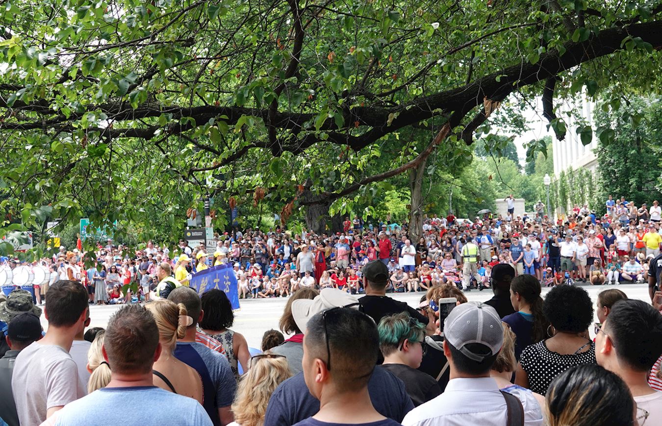 ![]() 图6:法轮功学员参加在美国首都华盛顿举行的独立日游行,路边民众喝彩。 |