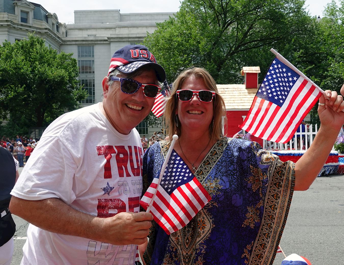 ![]() 图12:居住在马里兰州的张慧东第四年参加美国首都独立日游行。 |