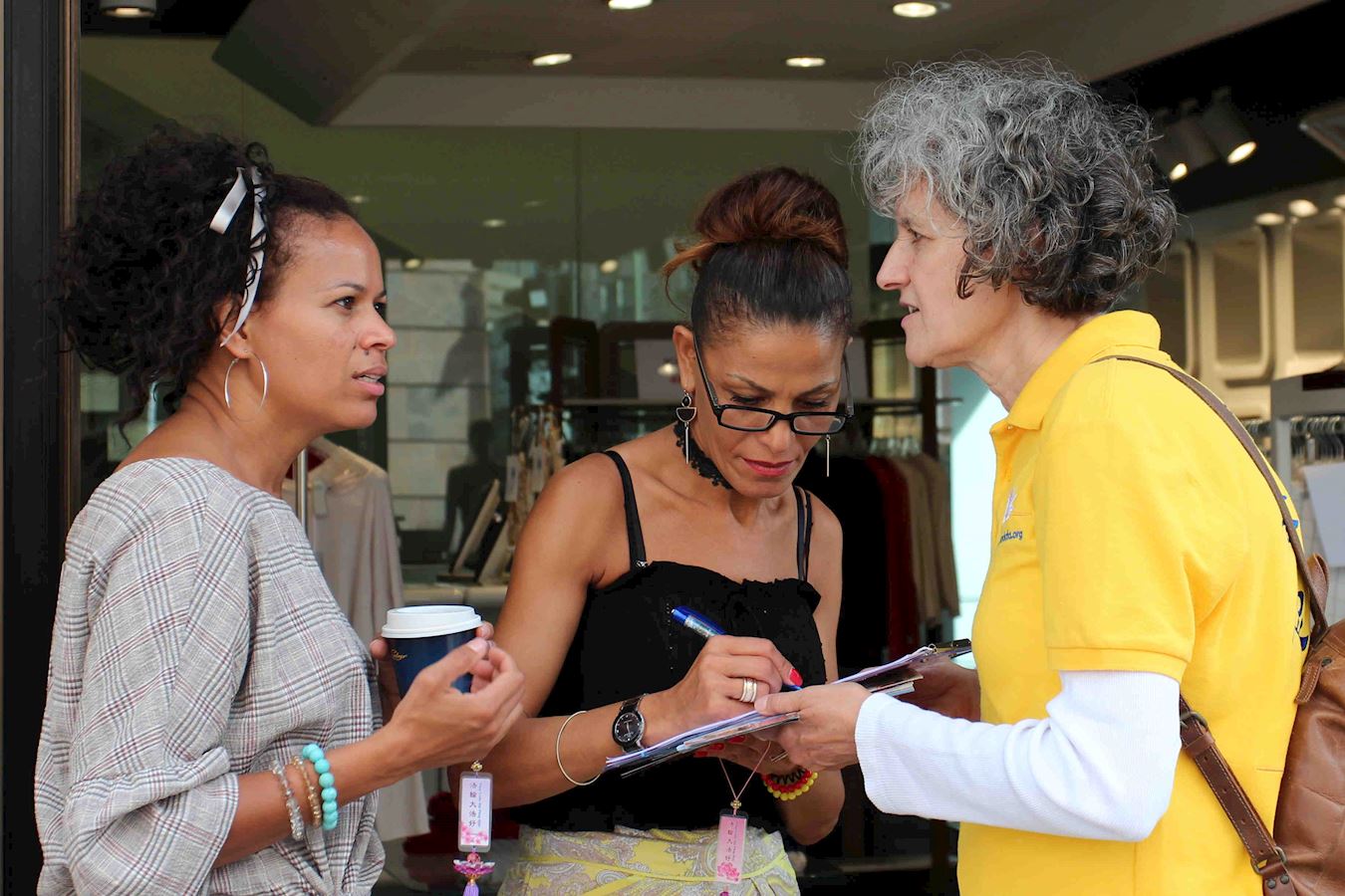 ![]() 图15:时尚顾问感到游行非常美,签完字她很高兴自己能支持反迫害 |