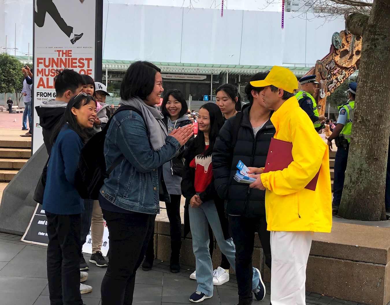 泰勒说:“我们感到欣慰的是,这种事情在新西兰不会发生,所以最重要的是让人们都知道这件事。当今社会,社交媒体是一种强有力的工具,把真相传播出去,让全世界都来关注这个事件,而不仅仅是新西兰。如果让人们知道事情的严重性,他们就会关注,就会互相传播、谈论。我们会在网上搜索你们的消息,当我们看到什么都会分享,别人也会分享,这就会成为一个真相链。我们很高兴,今天了解了真相。法轮功学员做得很棒,值得让人鼓掌。这种平静、祥和的抗议让人由衷地钦佩!”