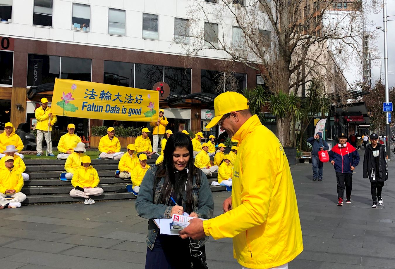 ![]() 图3:明白真相的民众纷纷在征签表上签字,支持法轮功学员反迫害。 |