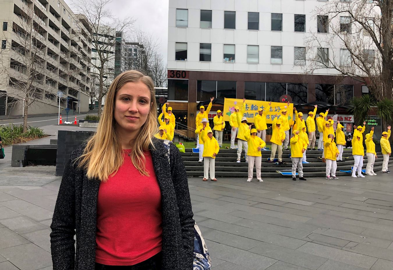 莎万娜·珀斯特尔(Savanna Postel)在奥克兰一家医疗机构工作,她来自新西兰的激流岛。好多年前,法轮功学员去那里介绍功法的时候,她就听闻了真相。她有时也打坐冥想。看见学员们在炼功时,她说:“我能感受到他们的念力都很集中,并且整个炼功场融为一体。这是用一种非常平和的方式来传播真相,我希望他们都能够达到心中所期望的目标,帮助更多的人。虽然真相被中共掩盖,但是他们不可能阻止人们之间的传播,也不可能让人不说话。活摘人体器官,真是太让人恶心(disgusting),非常恐怖(horrified),真不知道这种事是怎么发生的!”最后莎万娜表示,她非常愿意把知道的真相告诉她的亲朋好友和医疗界的同事们。