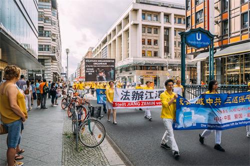 广东来的王姓夫妇在勃兰登堡门前,一直笑着观看法轮功学员集会的场景,表示“感觉非常好,心情很愉快”。另一对来德国探亲的大陆夫妇觉得游行队伍非常好,男士竖着大拇指说:“好!”女士说看了之后心情“特别舒服”。