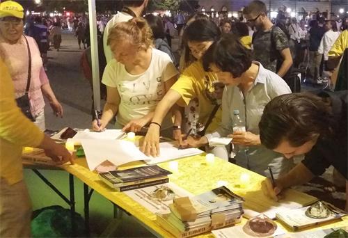 图6~7:直到夜里仍有许多民众为反迫害签名