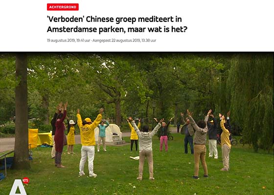 八月十九日晚,阿姆斯特丹AT5电视台播出了关于法轮功的报道。节目拍摄了法轮功学员在公园的炼功场景,并且采访了几位法轮功学员在中国遭受酷刑迫害的经历。