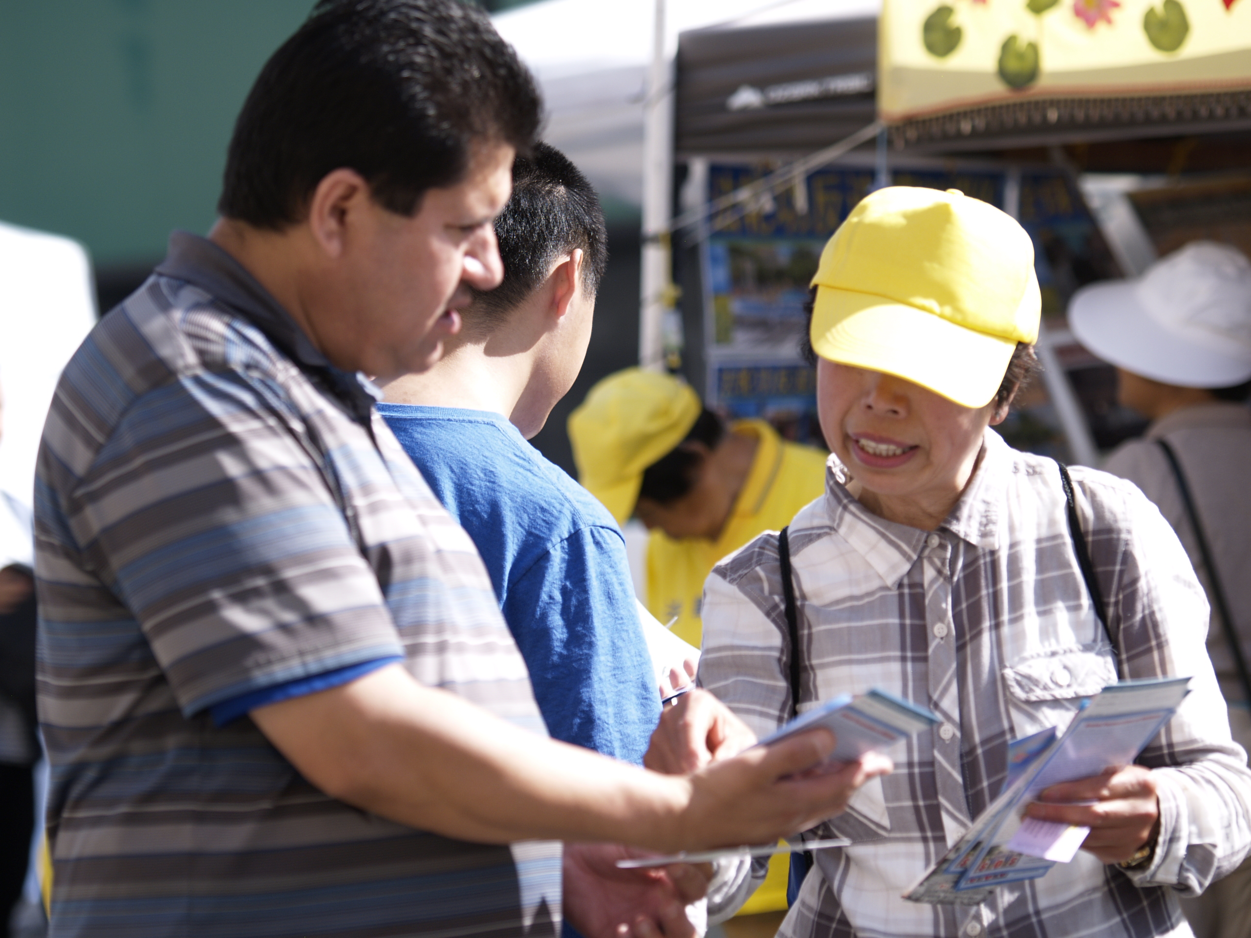 【明慧网二零一九年八月二十七日】美国加州奥克兰市一年一度的中秋街会于二零一九年八月二十四日和二十五日,在该市的中国城热闹举行,吸引各族裔民众前来。与往年一样,法轮功学员于二十四日在街会上摆放了摊位,向民众传播法轮功的真相,并劝华人三退保平安。