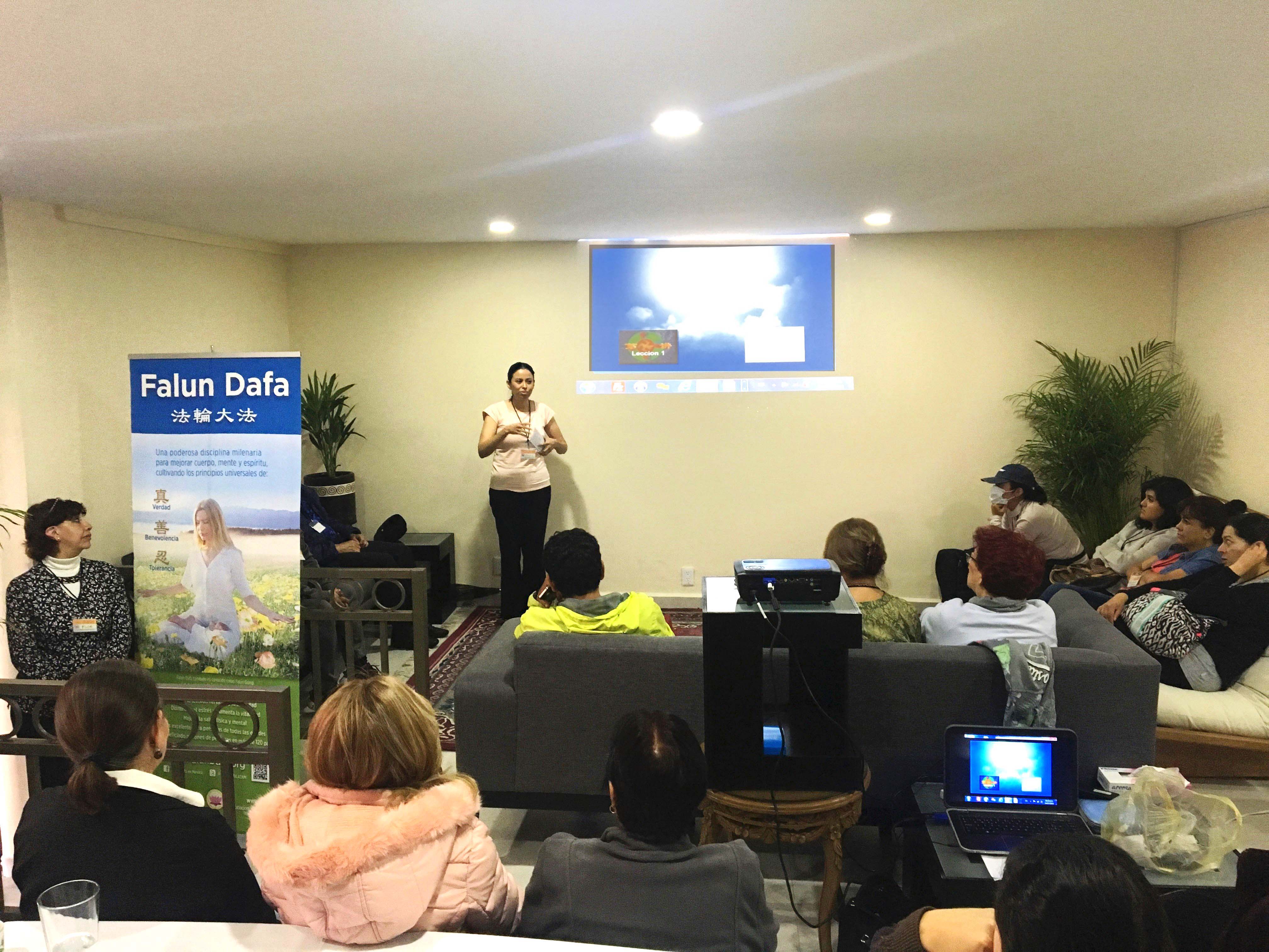 墨西哥城的亚历杭德拉(Alejandra)说:“我愿意学习这些法理。参加九天班后,我确实感觉并注意到自己的变化,我还需要继续学习。这将是一个非常大的挑战,因为我要面对很多事情,许多执著。但这是每天修炼的部份,要每天炼功。我真的很感激,并将把这些法理记在心中。在这九天的时间里,我学到很多。我要感谢你们所有的人,说实话,我感觉受到庇护。”