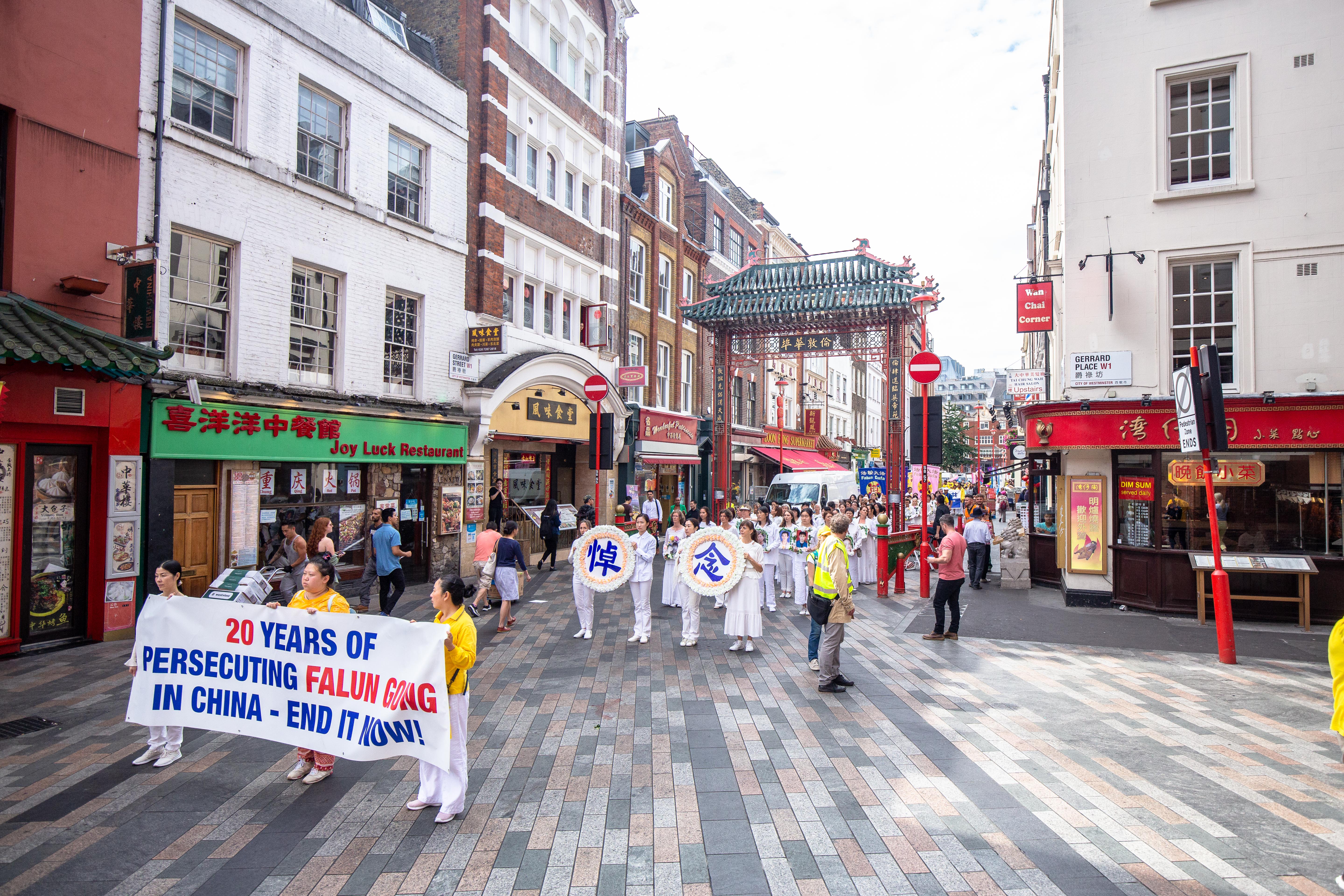 游行队伍从摄政公园出发,通过中使馆前,途径著名的商业街牛津街,穿过中国城,到著名的鸽子广场,沿着英国政府集中地白厅大街(White Hall)前进,经过英国首相府,最后抵达议会大厦,整个游行历时两个多小时。
