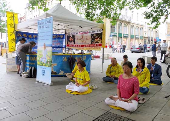 八月三日,德国慕尼黑法轮功学员举办信息日活动,向德国民众和过往的游客、特别是中国游客讲述法轮功学员反迫害的真相。