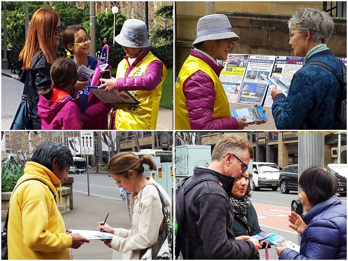 【明慧网二零一九年八月五日】(明慧澳洲悉尼记者站报道)二零一九年八月二日,法轮功学员在澳洲悉尼市中心最繁华的商业区海德公园(Hyde Park)集体炼功,传播大法的美好,同时讲述持续发生在中国的迫害真相,并征集制止迫害的签名。