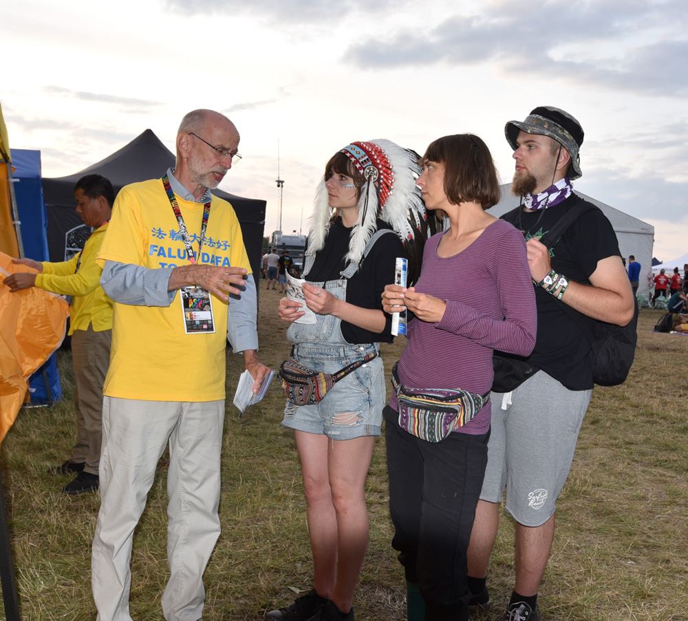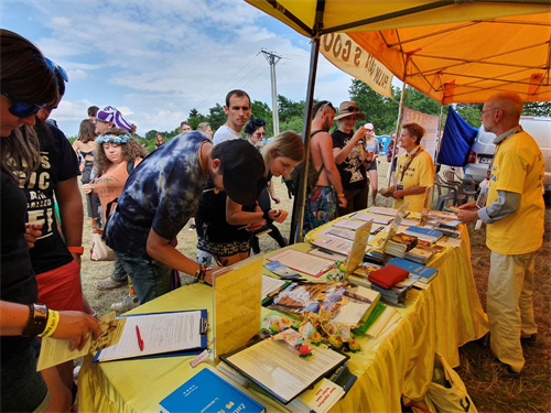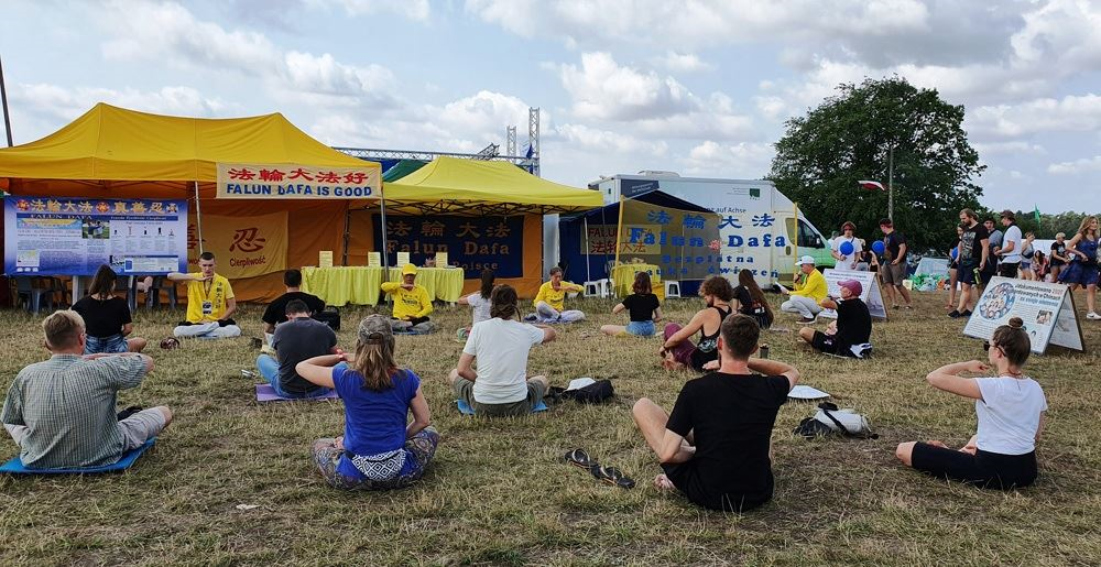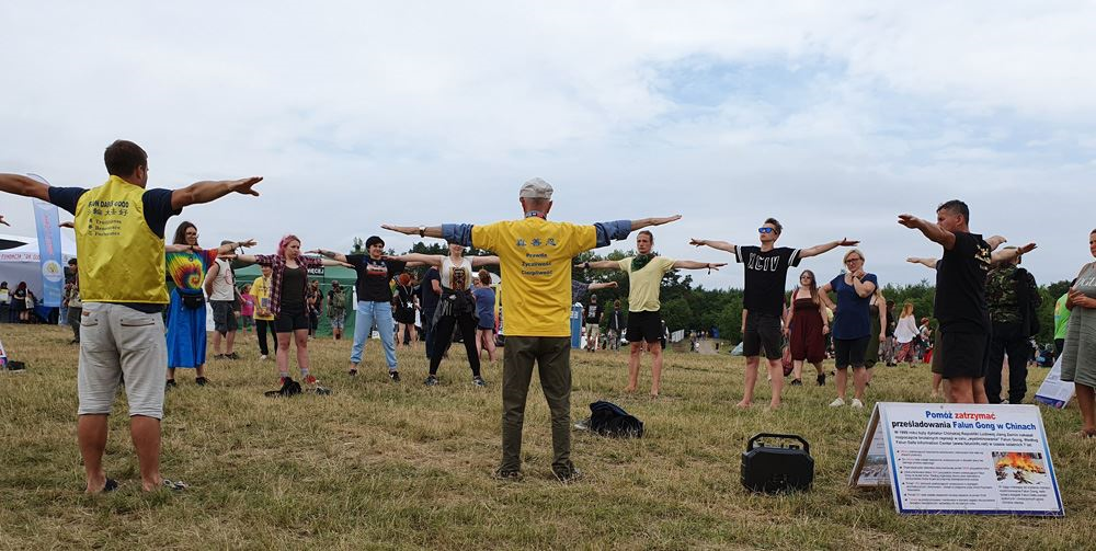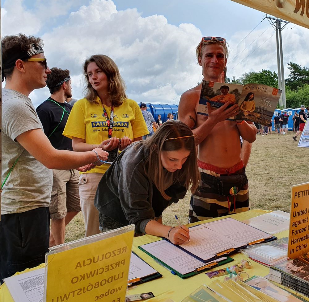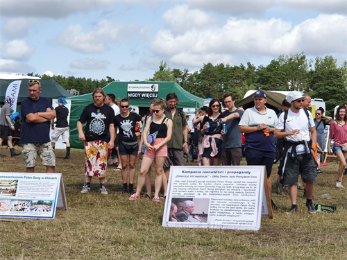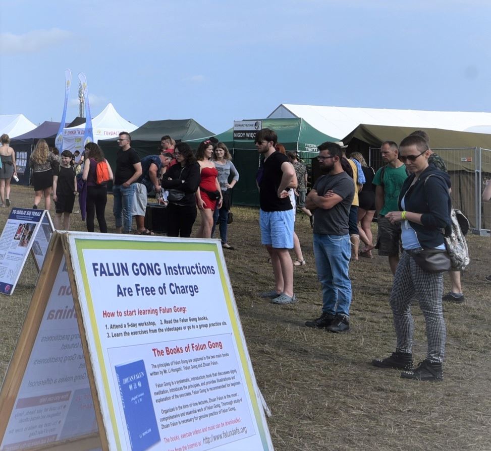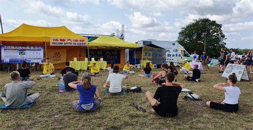 波兰法轮功学员已经是连续第四次参加音乐节活动。从七月二十九日至八月四日,他们与来自德国慕尼黑及柏林的法轮功学员们共同在音乐节上向来自世界各国的年轻人及民众介绍法轮功,受到热烈欢迎。越来越多的年轻人放下手中的啤酒,纷纷学炼法轮功,购买《转法轮》、《法轮大法 大圆满法》,了解法轮功真相,参加反迫害征签,并向法轮功学员致以崇高的敬意。