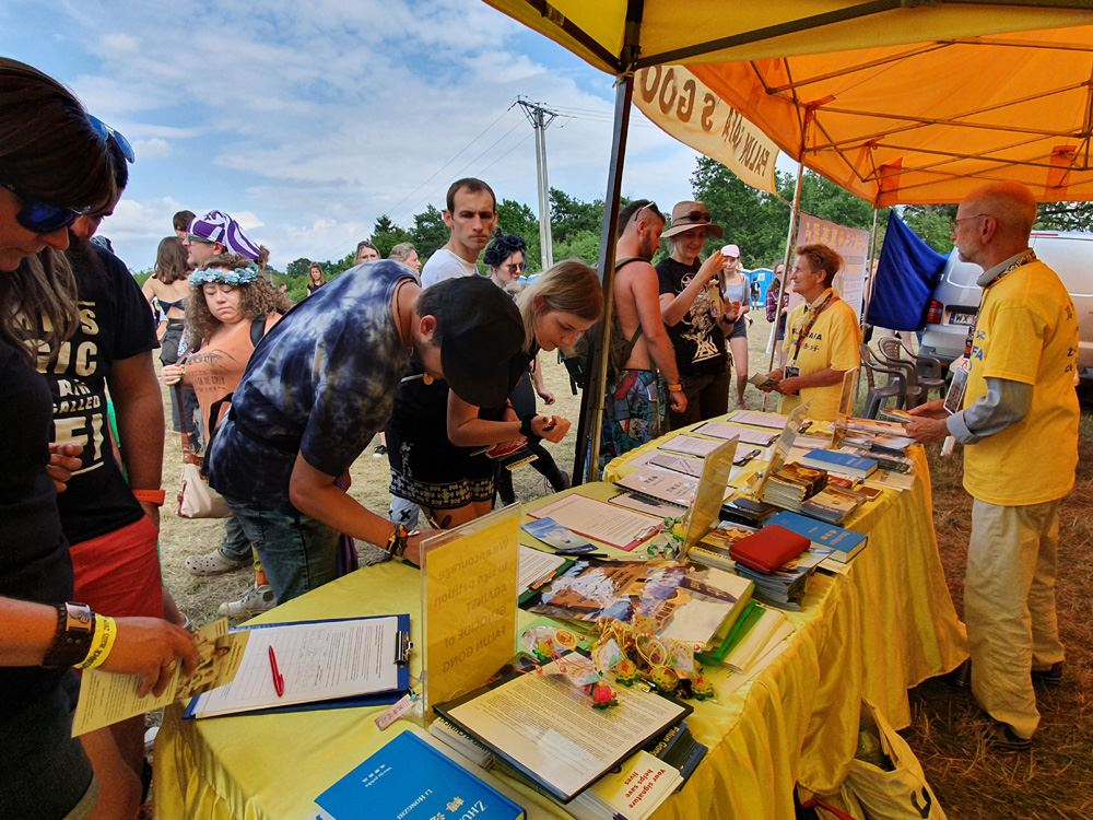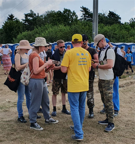 【明慧网二零一九年八月九日】二零一九年八月一日至三日,第二十五届欧洲最大露天摇滚音乐节再次于波德边境小城Kostrzyn市的奥得河畔开幕。十几万来自世界各国的摇滚音乐爱好者自带帐篷安营扎寨在宽阔的山坡树林中。