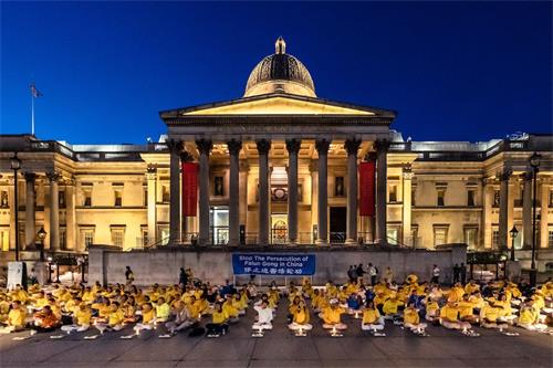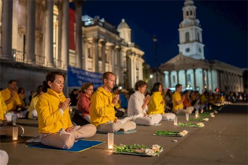 '图1~4:部份欧洲法轮功学员分别在特拉法加广场(Trafalgar Square)举行了烛光守夜活动'