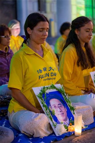 图7:大学教授马塞洛(Marcello)在特拉法加广场巧遇法轮功学员举行烛光守夜活动,表示支持法轮功学员的活动