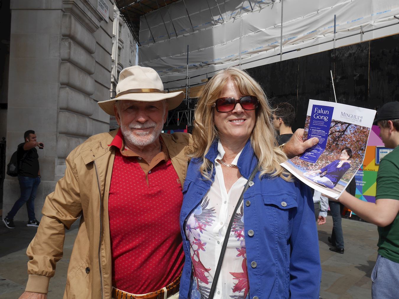 ![]() 图3:伦敦市民佩拉·加拉格尔(Pela Gallagher)和弗兰克(Frank)谴责中共对法轮功的迫害。 |