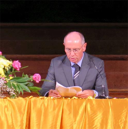 法轮大法创始人李洪志师尊为法会发来贺词,师尊再次叮嘱:“大法弟子的修炼不止是为了个人的圆满,是为了助师救度众生,是身有使命的,这是你们能成为大法弟子的原因。”师尊希望大法弟子:“有没做好的,现在还没结束,那就做好你们该做的!”