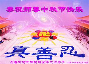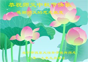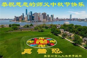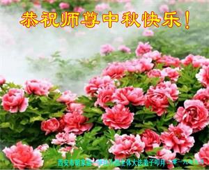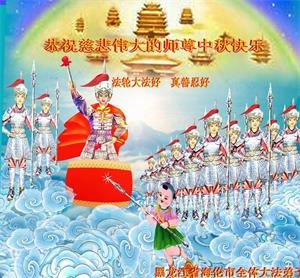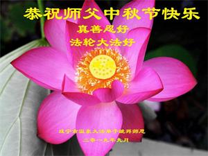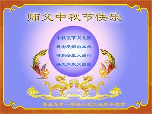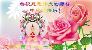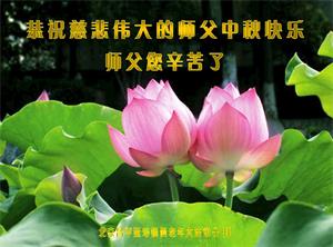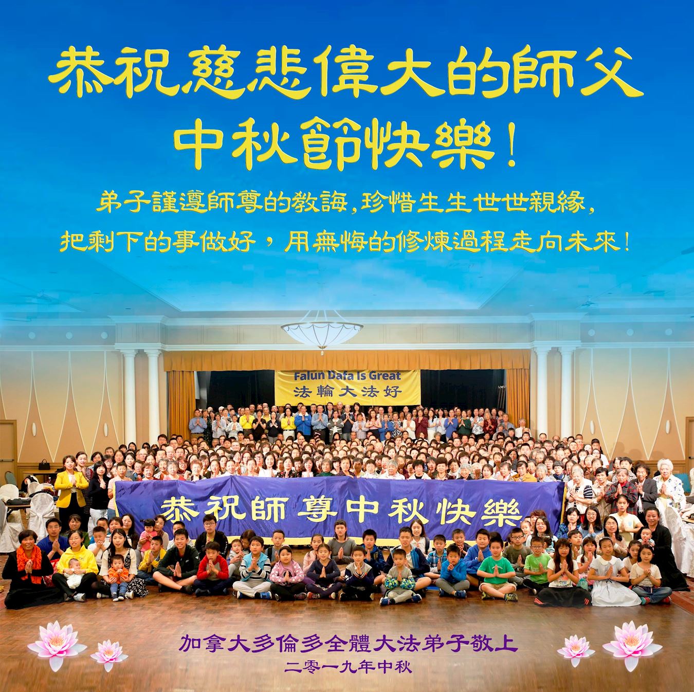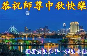 ![]() 图1:中国传统的中秋节即将来临之际,多伦多法轮功学员恭祝师父中秋节快乐! |