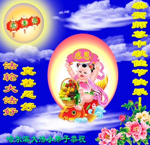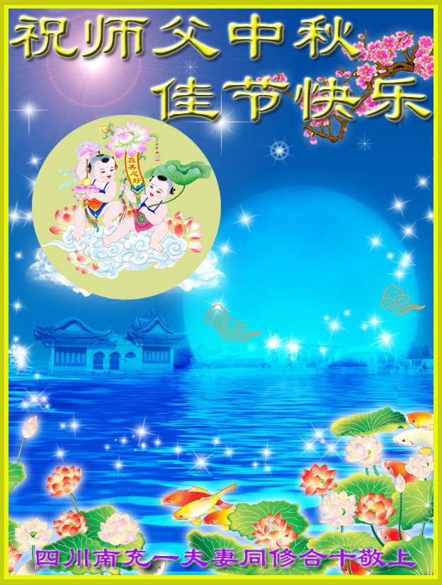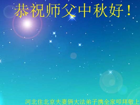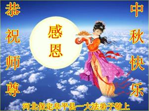 慈悲伟大的师父您好!您辛苦了!弟子全家和明真相的姐姐妹妹恭祝您中秋节快乐!我们无比感谢您的慈悲救度,谢谢您!