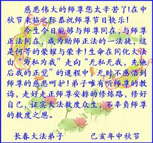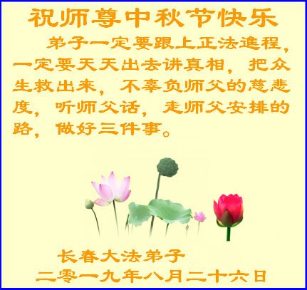 <英文版: http://en.minghui.org/html/articles/2019/9/11/179384.html>中国大陆民众敬祝李大师中秋节快乐