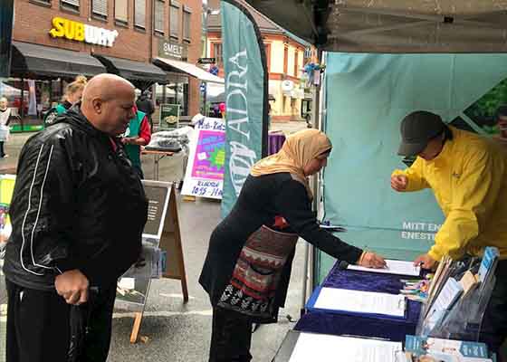九月七日,法轮功学员开车来到挪威自治市-灵厄里克,在这里摆设真相展位,向当地的民众展示法轮大法的美好,传播法轮大法在中国遭受迫害的真相。